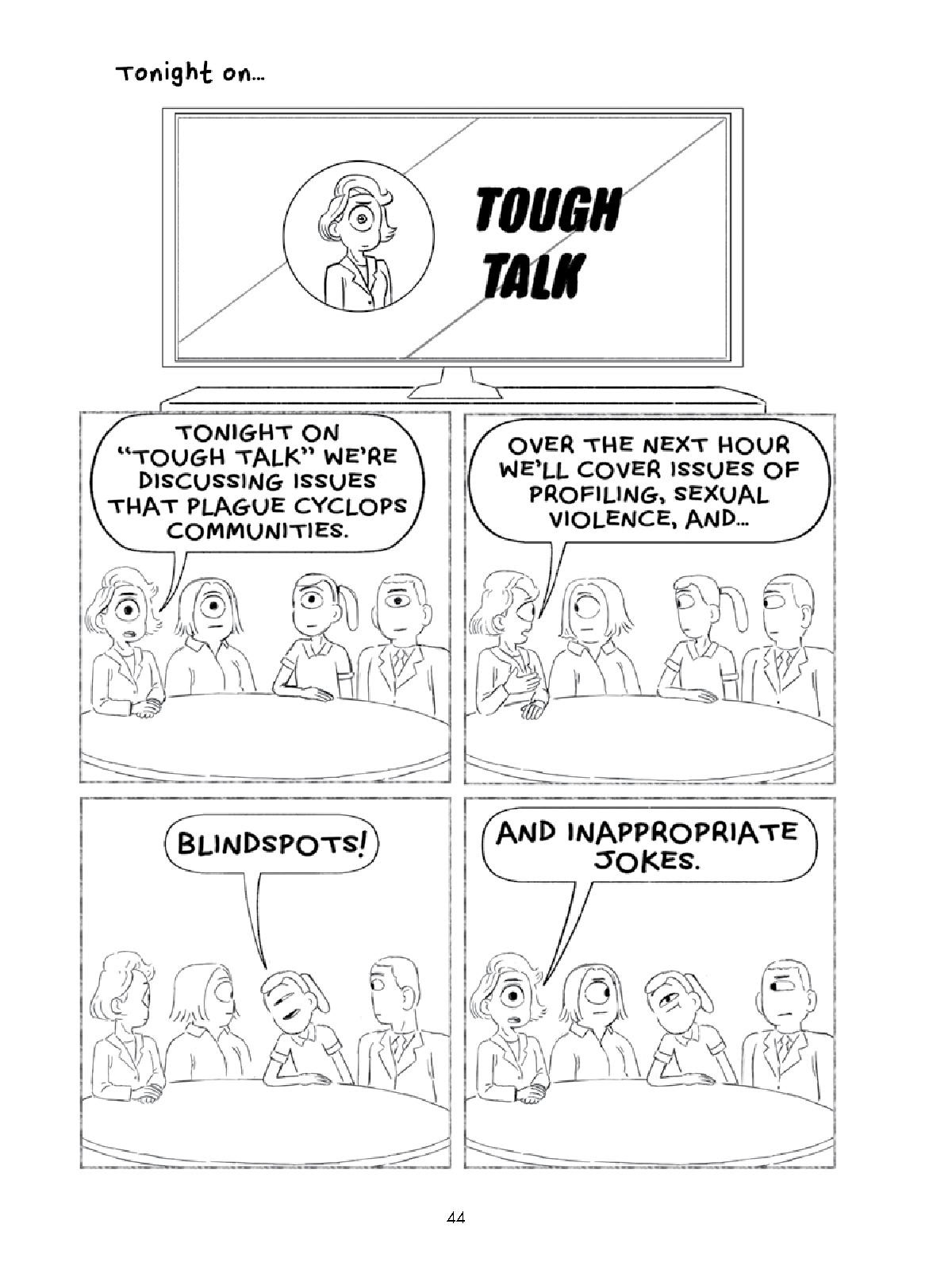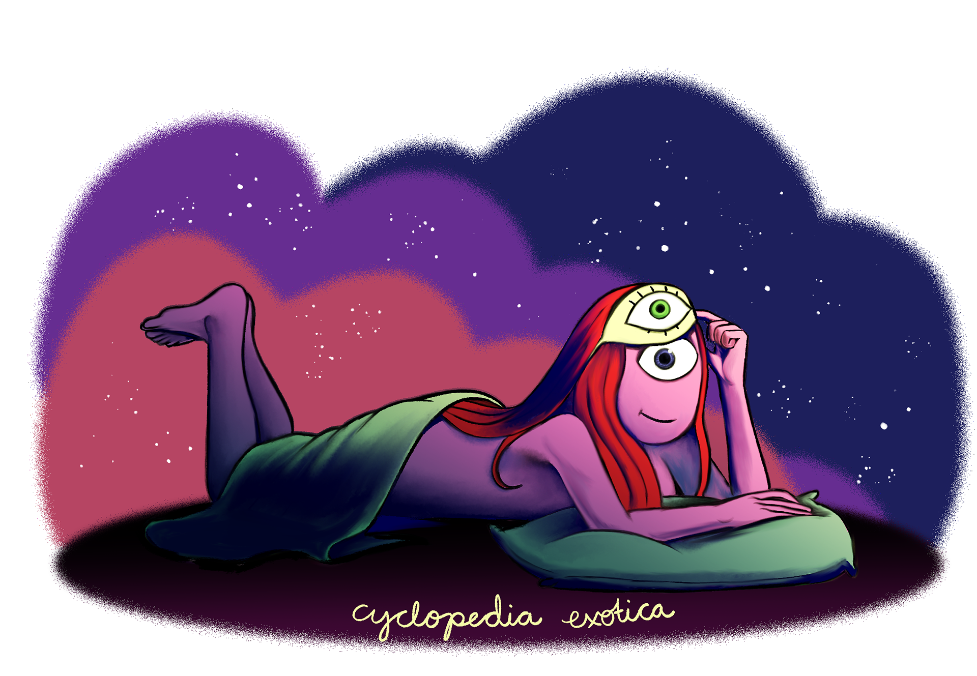 In Cyclopedia Exotica, doctor’s office waiting rooms, commercials, dog parks, and dating app screenshots capture the experiences and interior lives of the cyclops community; a largely immigrant population displaying physical differences from the majority. Whether they’re artists, parents, or yoga students, the cyclops have it tough: they face microaggressions and overt xenophobia on a daily basis. However, they are bent on finding love, cultivating community, and navigating life alongside the two-eyed majority with patience and the occasional bout of rage.